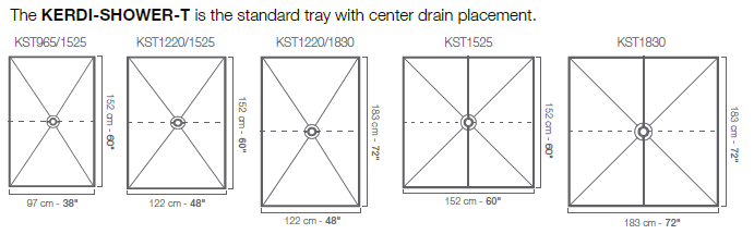 | Item No. | Dimensions | Perimeter height | Drain placement |